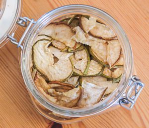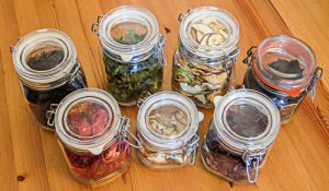 Besonders? Ja, weil selber dörren u.a. sehr Liebe- und Zeitaufwändig ist. Dörren – gerade von Obst und Gemüse – setzt viel Ruhe, Hingabe und Gelassenheit voraus. Obst oder Gemüse ernten, sortieren, waschen, zerschneiden, auf die Dörr-Gitter legen, ggf. nach einigen Stunden umsortieren oder drehen und dann in die Gläser packen. Dabei viel (Hände-)waschen und immer auf die Sauberkeit achten.