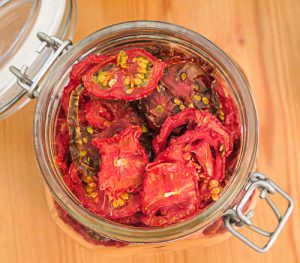 Tomaten brauchen etwas länger und sollten mindestens ein mal gedreht werden. Der Geschmack ist extrem intensiv und mit in Öl eingelegten Tomaten vergleichbar – aber nochmals intensiver (und natürlich Fettfrei – also im Gegensatz zu den Öl-Tomaten auch gesund!).